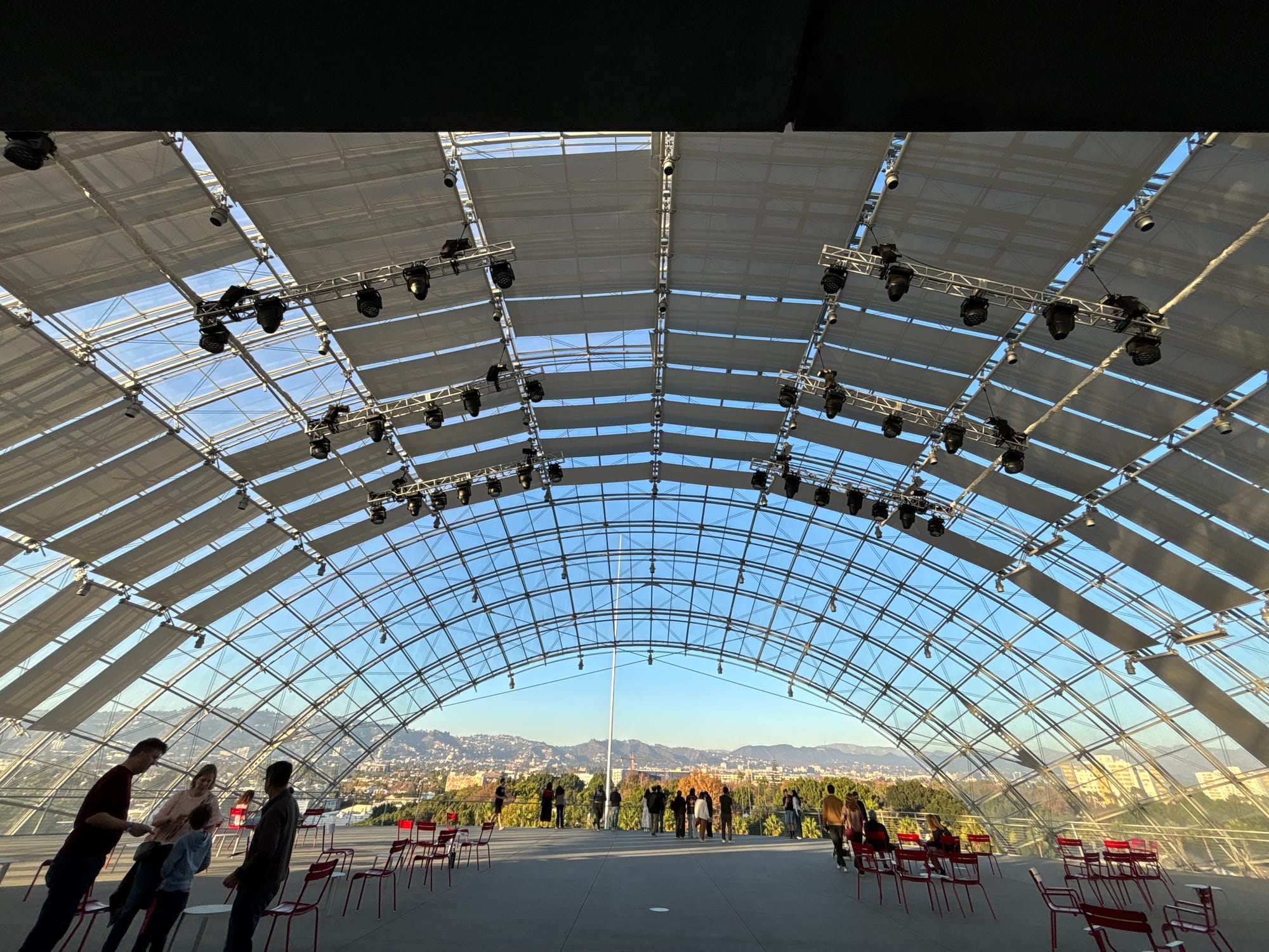 Getty 有两处,一个是 Getty Villa,一个是 Getty Center,两处都免费开放,但需要提前预约。今天只去了后者,网上预约了五点,因为其它都约满了。到了才发现,根本没人看具体时间,只要有当天的预约就可以进。