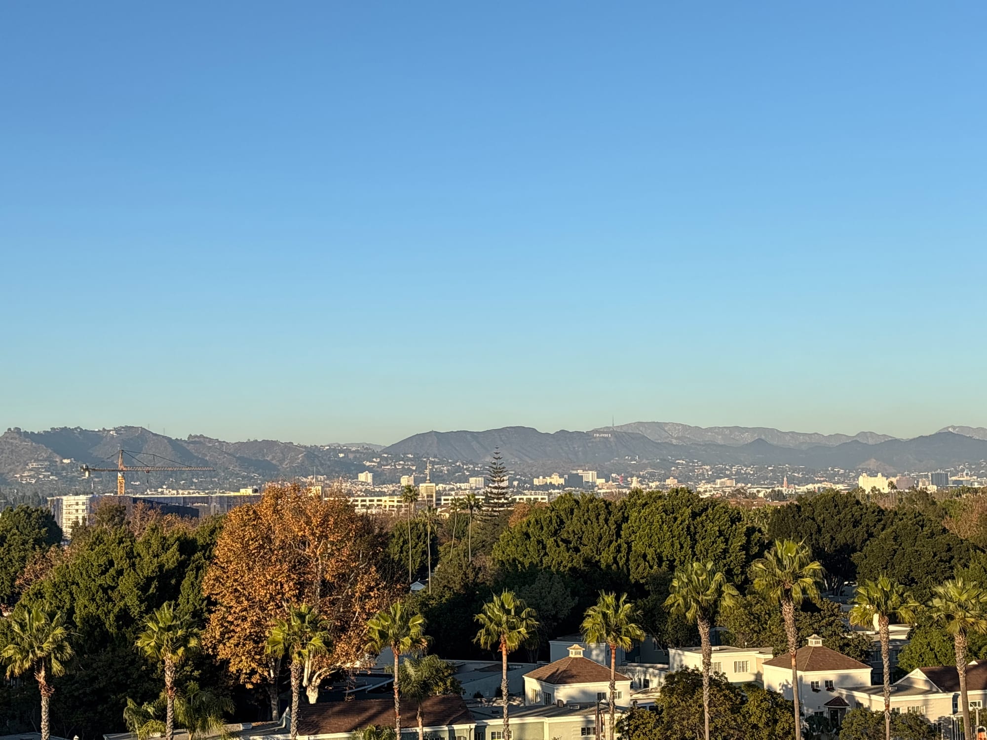 顶上有个观景台,可以看到远处山上的 Hollywood 标志。