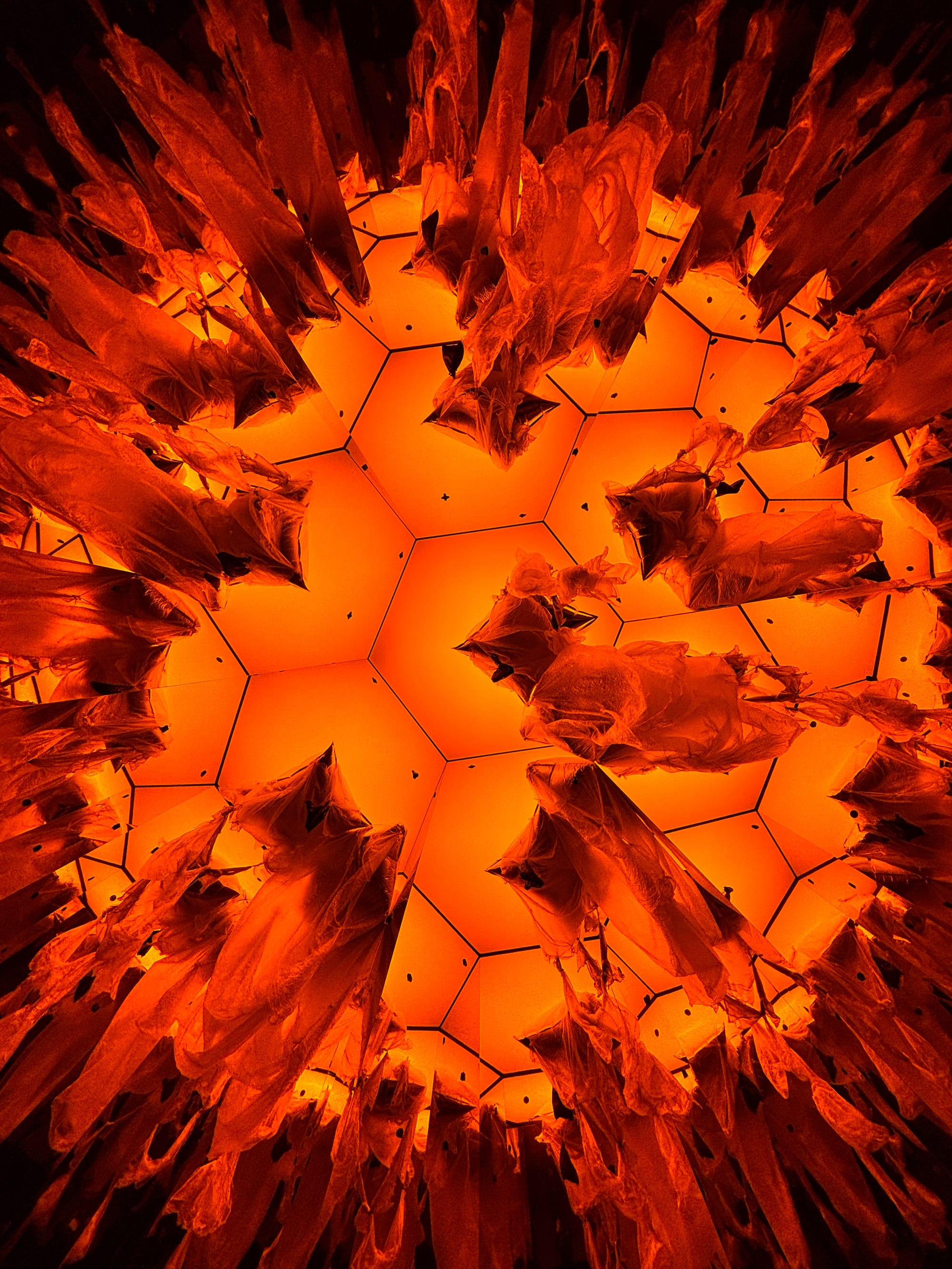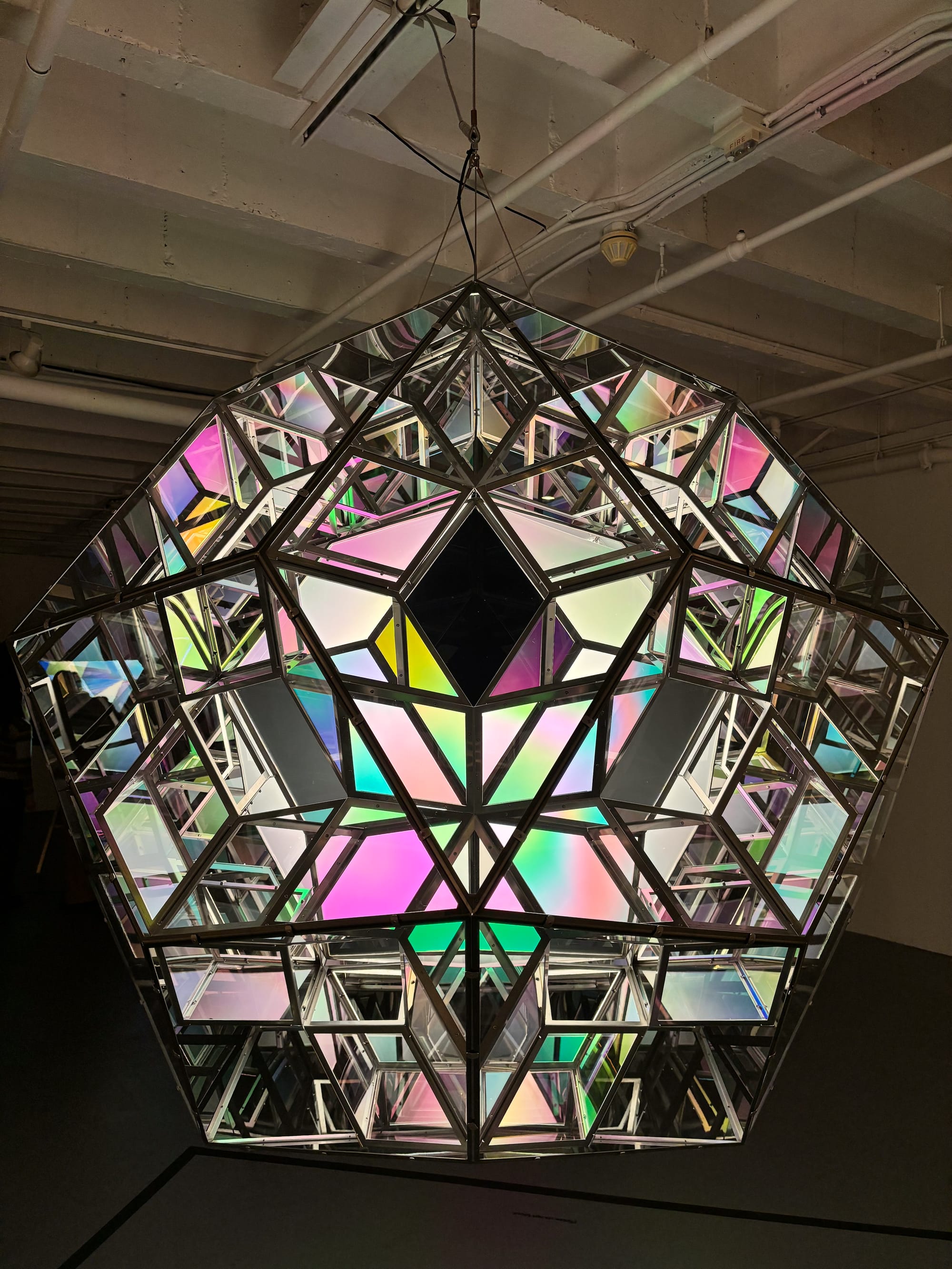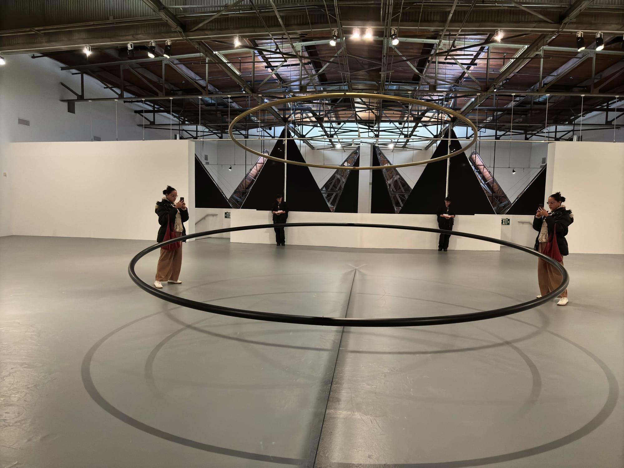 一早去了 MOCA Geffen,是 Olafur Eliasson 的独展。图一是他设计的气象记录仪,根据阳光强度,湿度等等会绘制出不同的图案,每六小时完成一幅,一天绘制一幅。也就是这个作品一直在生长。图二是他设计的光影装置,这玩意最奇妙的是,抬头看看到棱镜反射的图案,低头一看所有的色彩消失,无论你涂了口红,还是染了头发,都变成灰阶。我一开始还没注意到,直到旁边的一个 Olafur 迷和她朋友讲解,我才注意到。