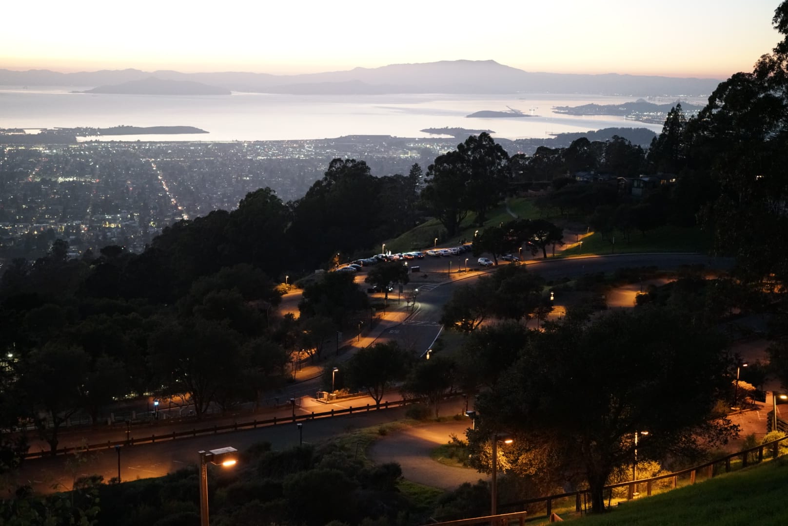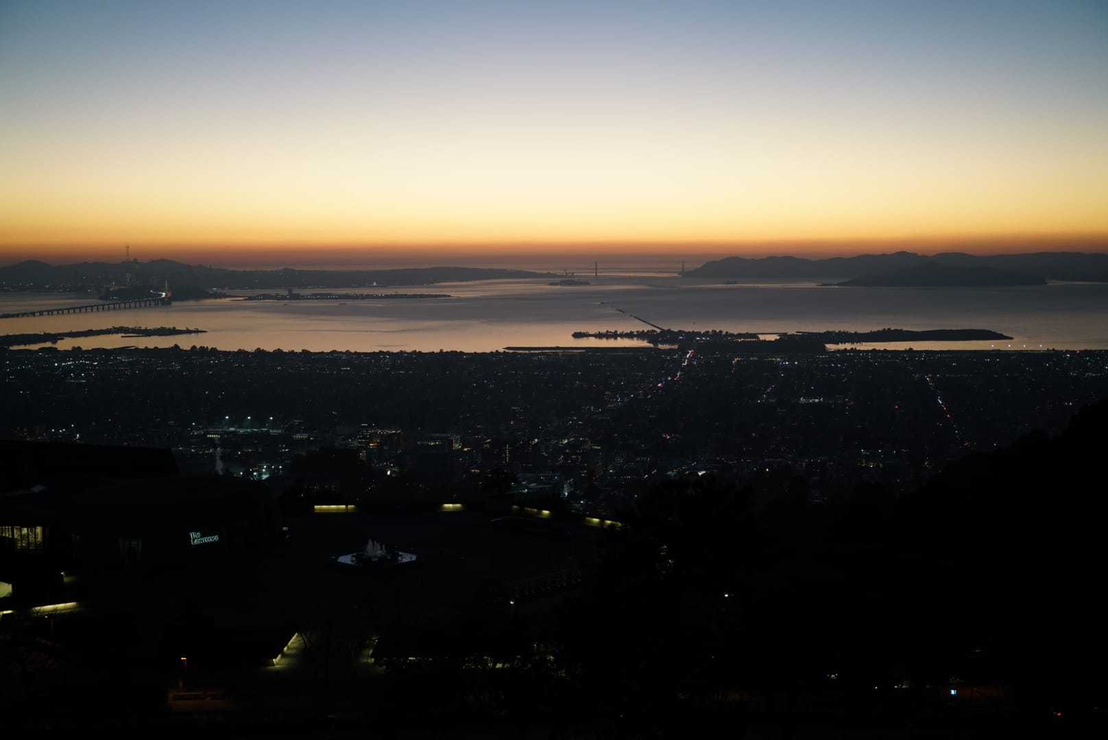 末了,我们开车上山,跑到劳伦斯国家实验室前面,继续看太平洋的日落。同样十分壮观,十分静谧。