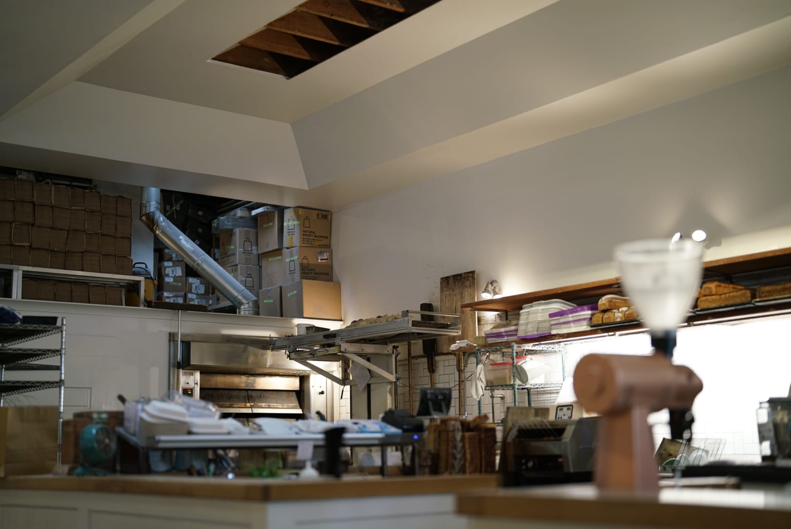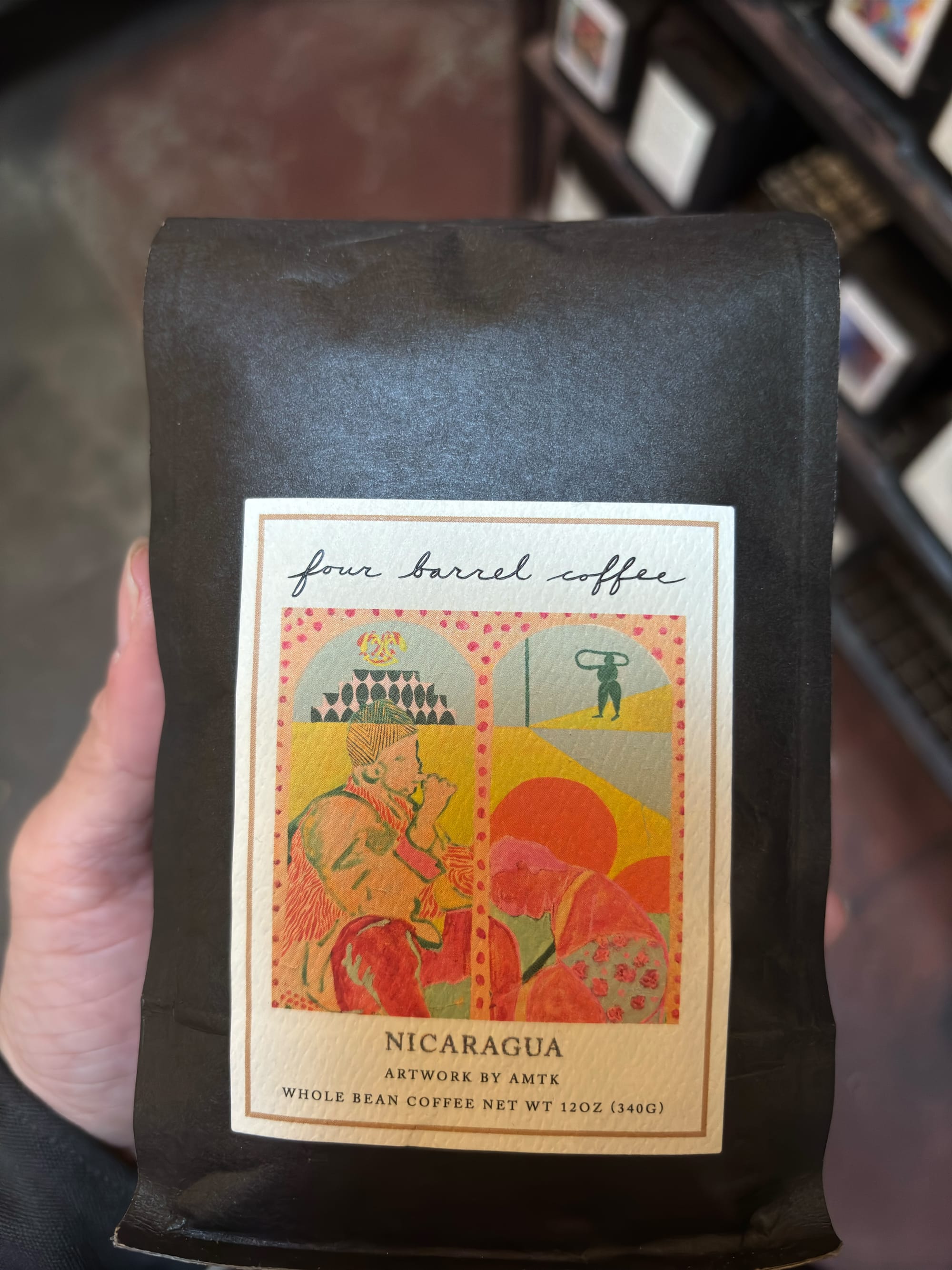 等他忙完,我们下午进城转了转,先去 Ritual cafe 喝了一杯,确实不错,然后逛了 Peak Design 的旧金山店,还好我已经买了 Evergoods 的包,否则估计又要买个 Peak Design 的包才能出来。然后去 The Mill 吃了点点心,里面有卖 Four Barrel 的咖啡豆。这也是旧金山本地的咖啡豆,很有特色,包装上的标签都是请艺术家创作的,为了不让大家撕掉这个标签,原本后面印着 Fuck You。现在做大了,也稍微收敛了一点。