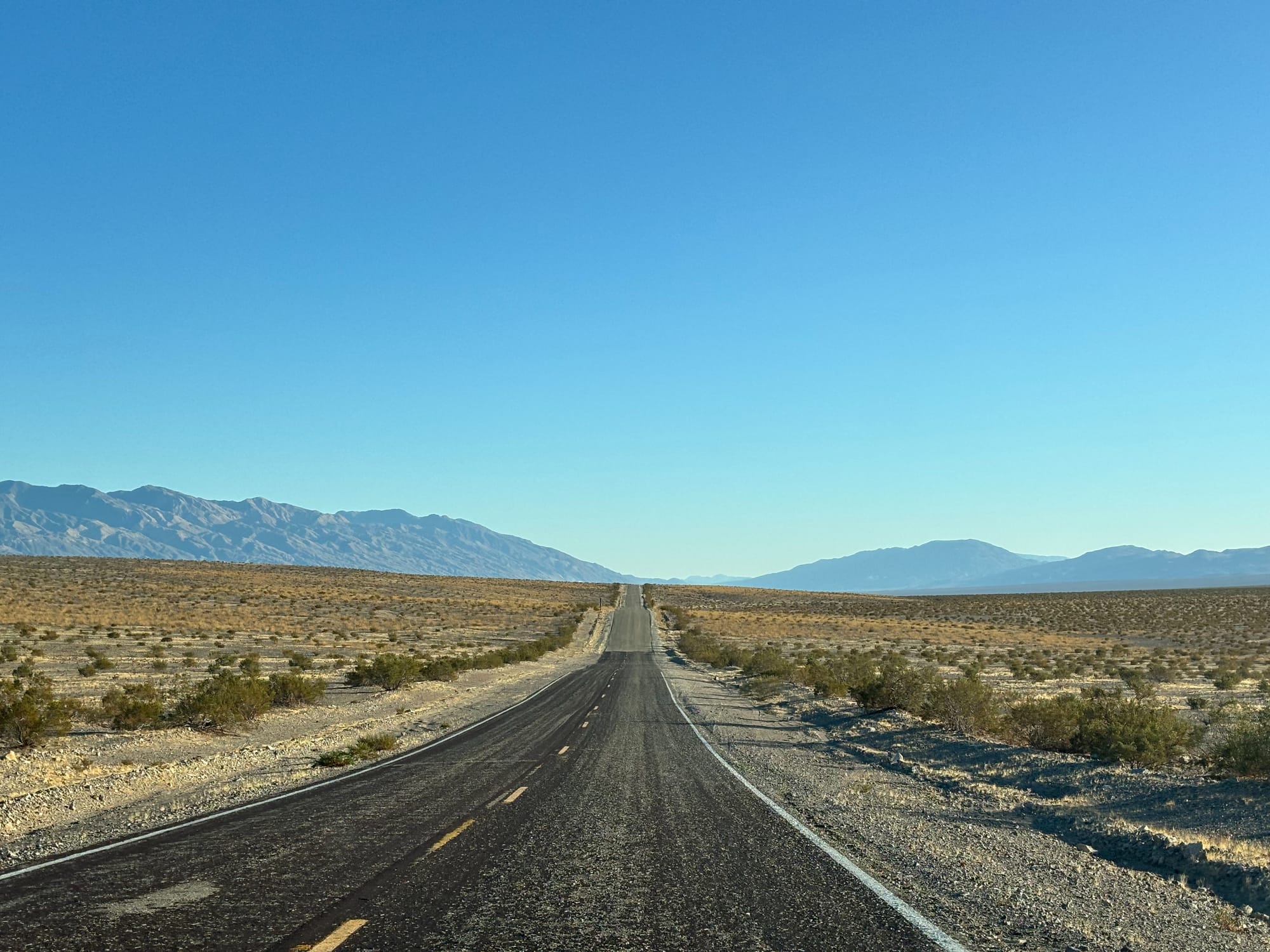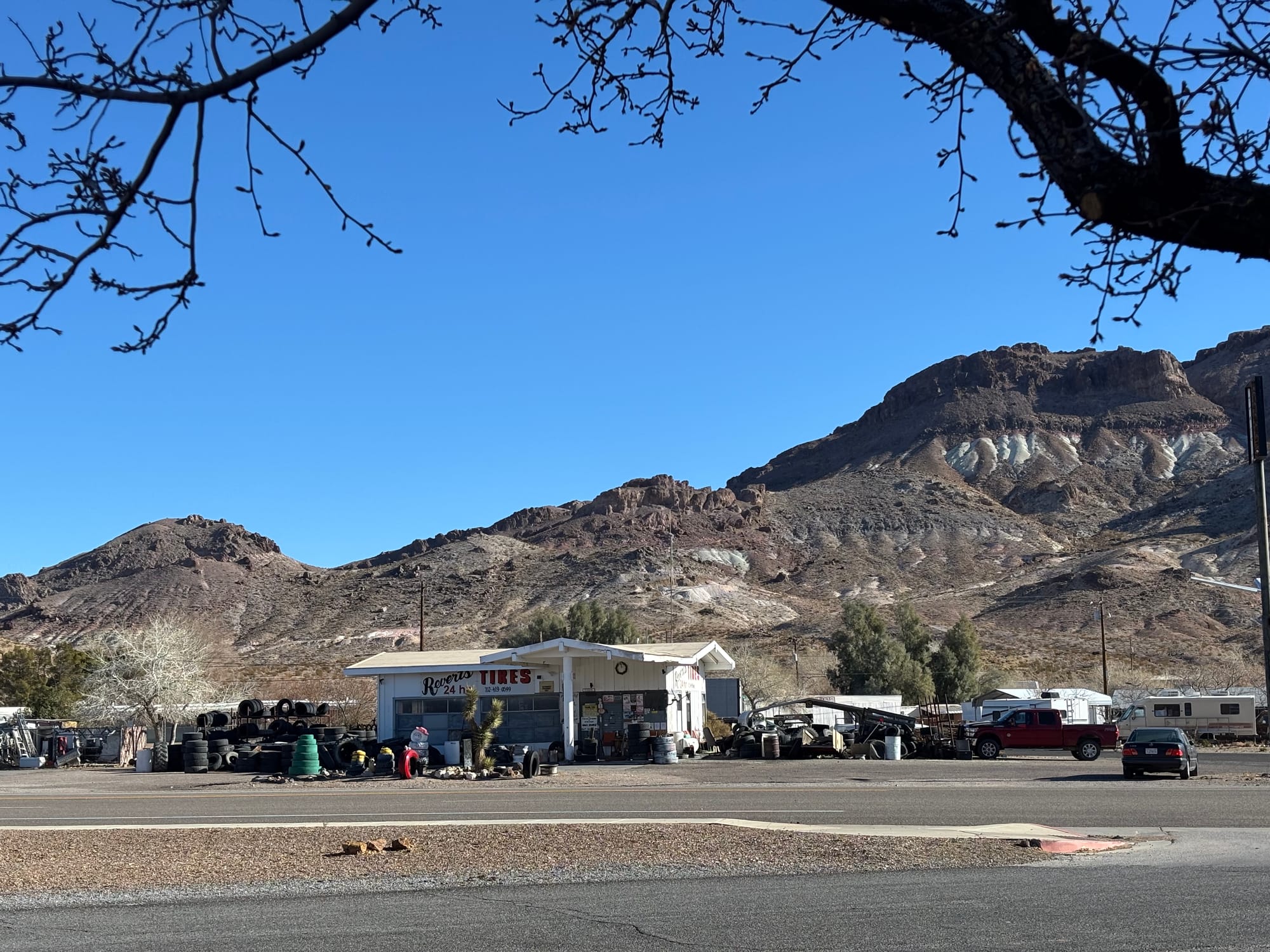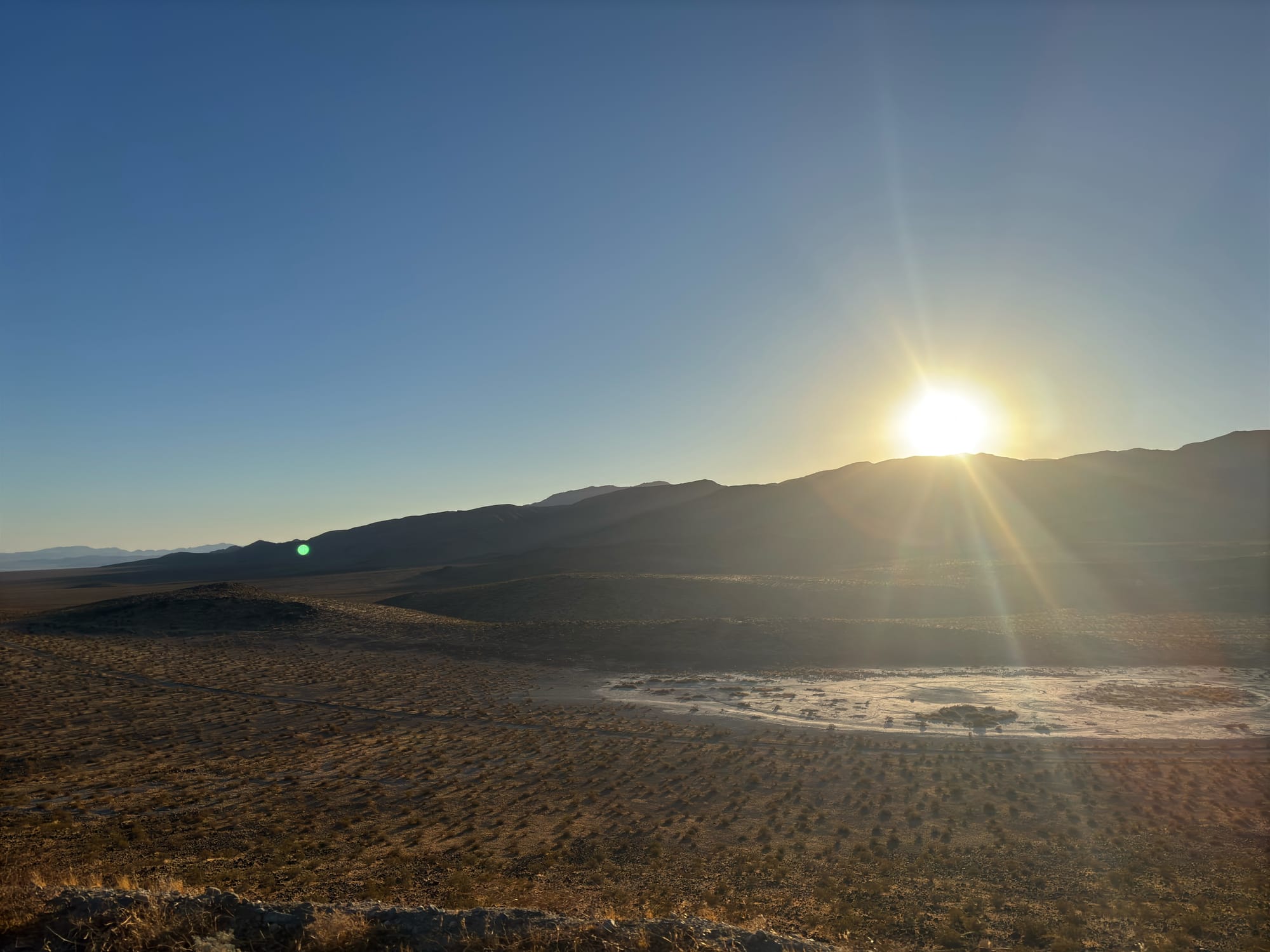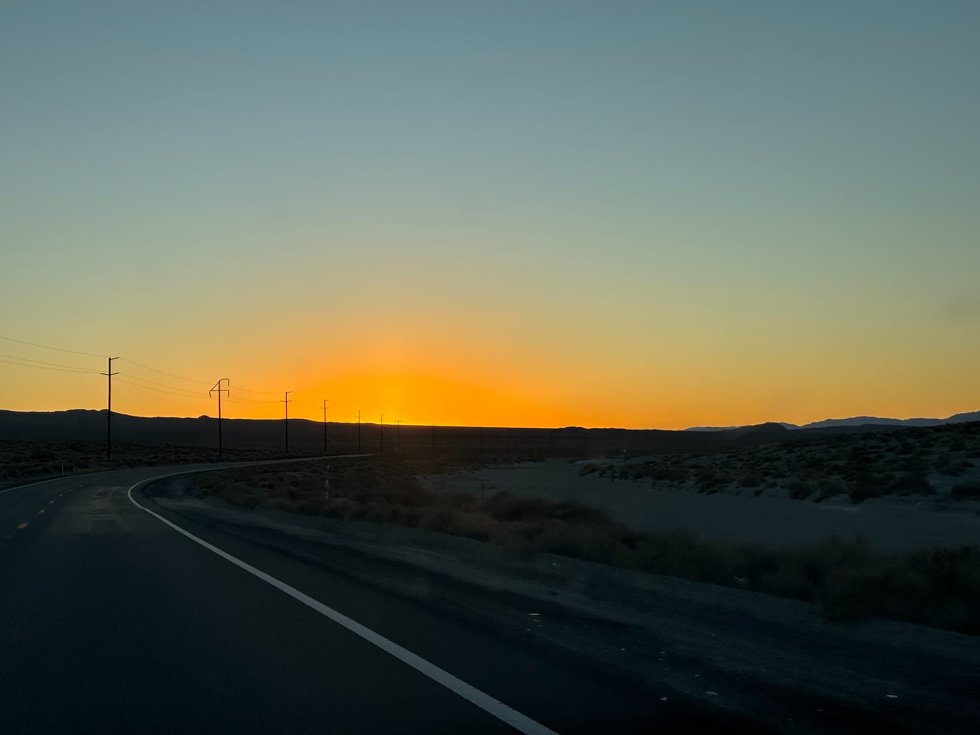 拿到车之后,我们就往 Death Valley 的方向开,因为想着第二天一早就可以去逛这个国家公园。租到的这辆 Tesla 3 有点问题,速度一上去就会震,估计是没做四轮平衡。另外电池寿命也比较短,晚租到的时候是80%的电池,开了两百公里就剩18%了 !