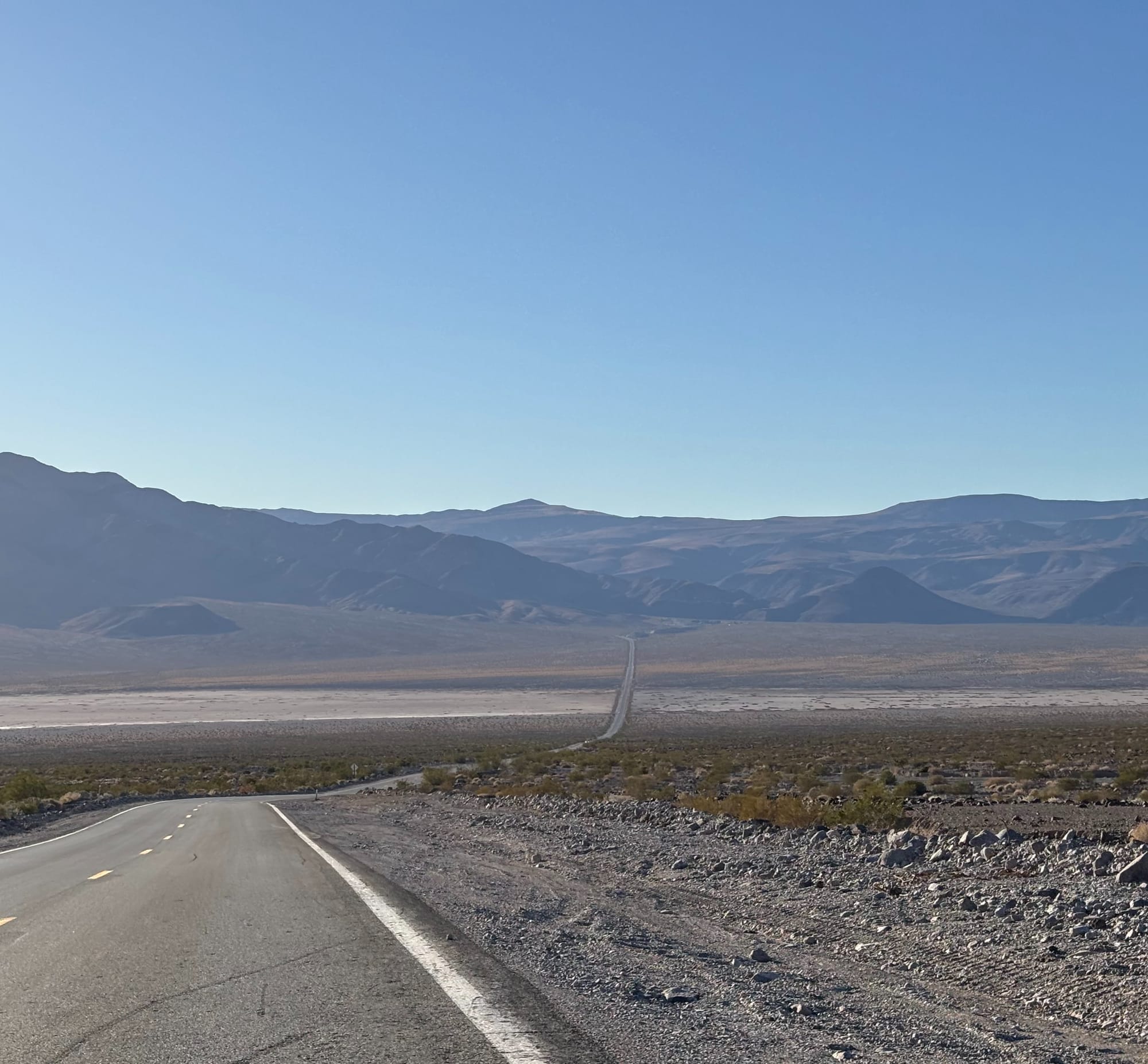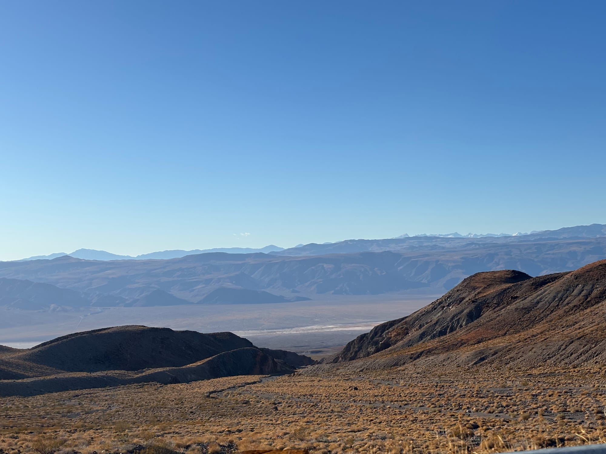 进 Death Valley 的时候都是我开,开得小心翼翼;出来的时候我朋友开,结果他开山路非常兴奋,一脚油门开到了 80 miles,眼看着电池蹭蹭往下掉,干净喊停。我们一看预计电量,到充电站还剩不到10%,而这已经是离我们最近的超充。于是我们只好关了空调开了车窗,关了音乐,拿手机外放音乐,就这么一路坚持,最后总算顺利到达超充,没有用拖车。