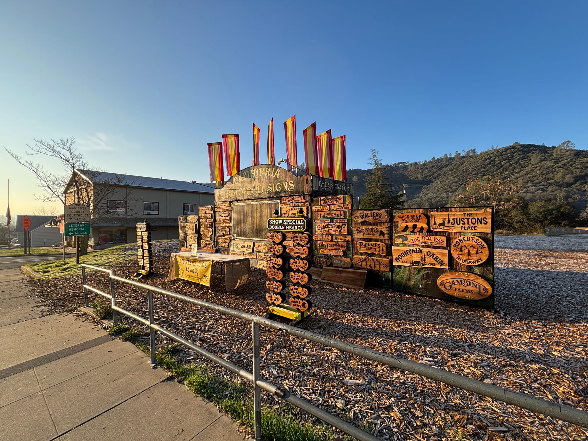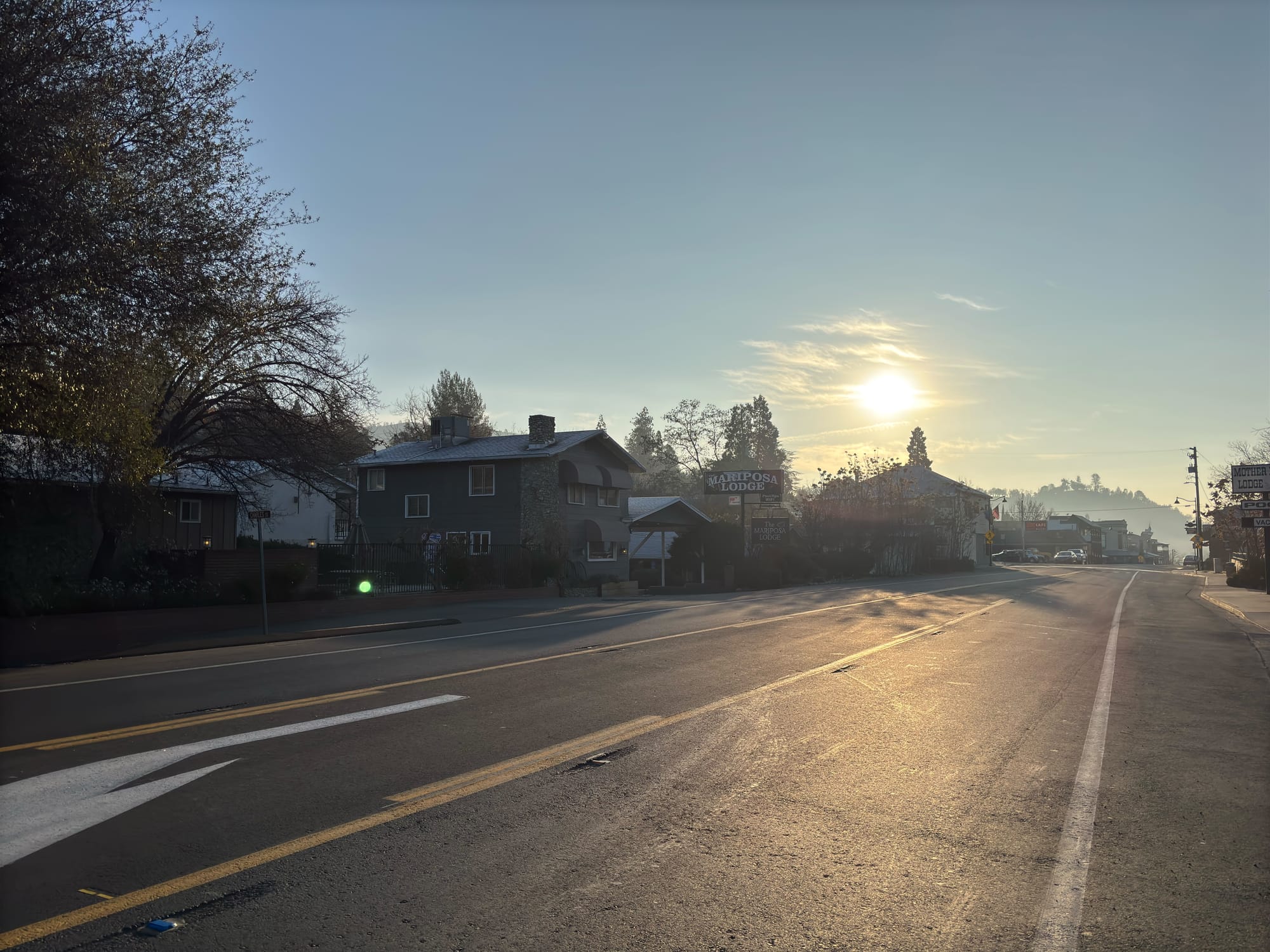 充完电吃完晚饭我们继续上路,准备赶到 Yosemite 山脚下的 Mariposa ,这样我们第二天逛完 Yosemite 就可以早点赶去旧金山。Mariposa 也是一个很祥和的小镇,朋友又找到一个条件不错的 motel,出去两分钟就有一个超充。