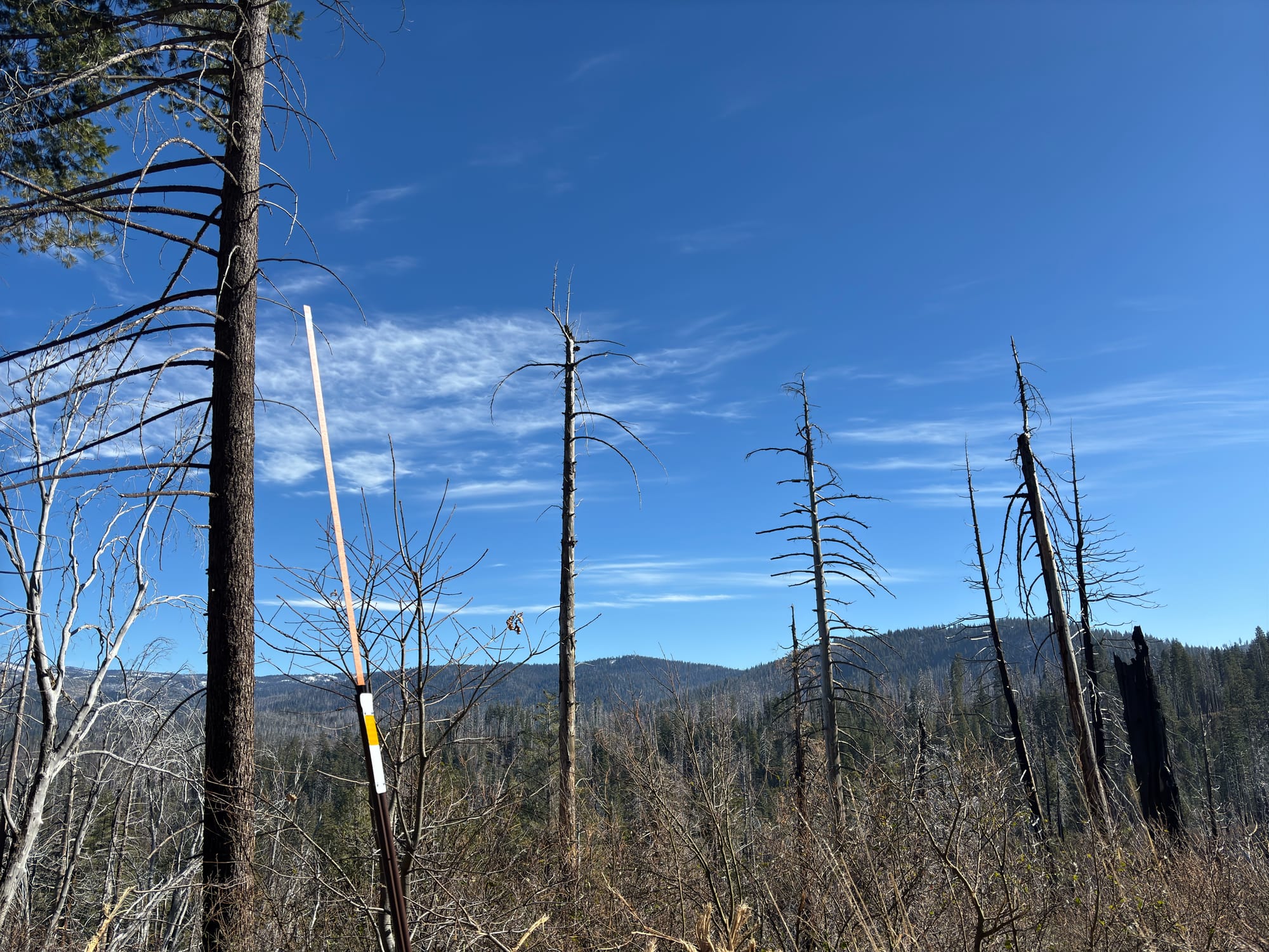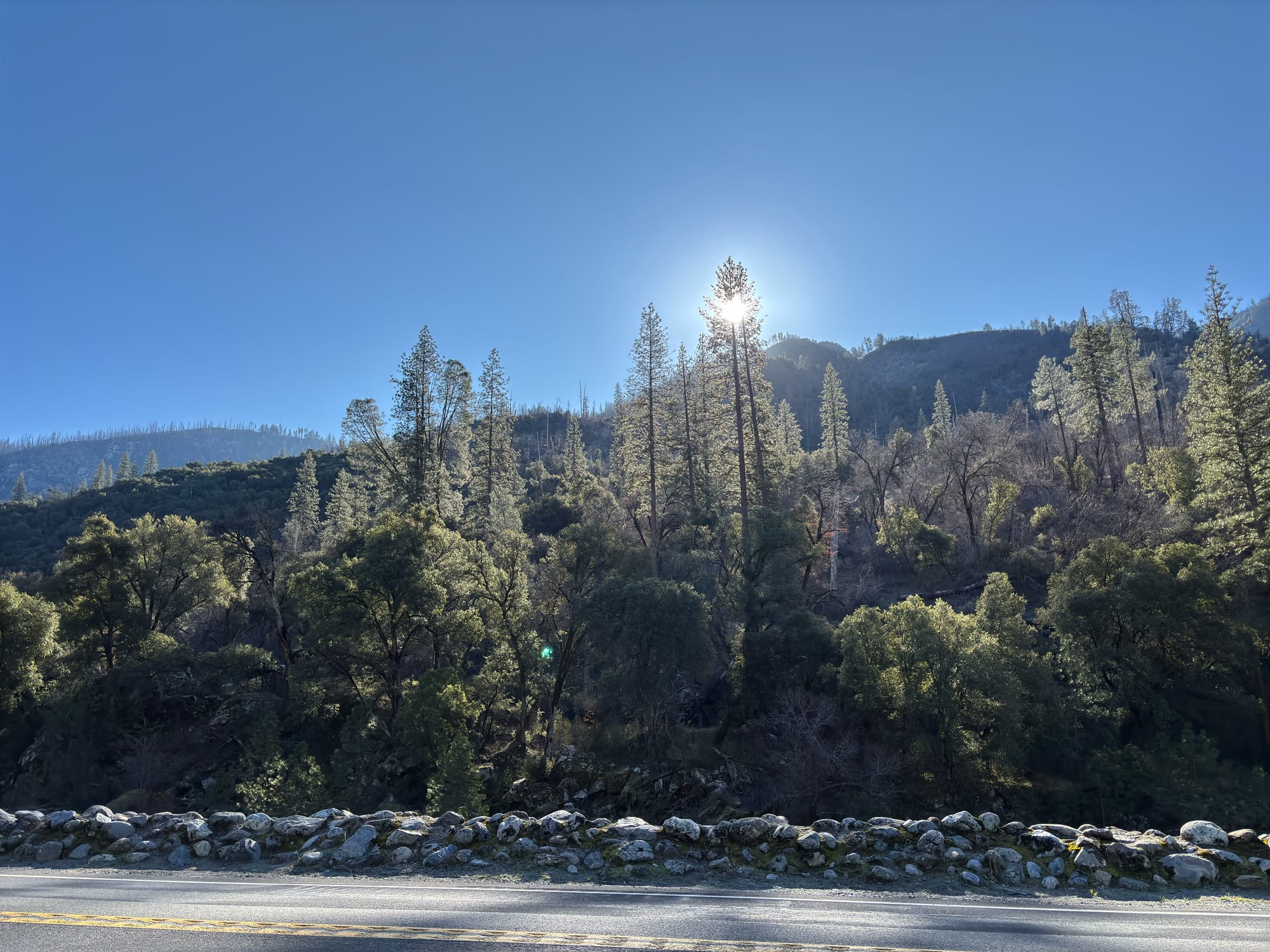 离开 Yosemite 的时候,一路看到很多烧过的山地,部分灌木已经长了出来,而乔木要么被烧得光秃秃的,要么就是在山火中幸存了,没有多少是后来恢复的。有时候也惊叹大自然的力量,被烧光的山林自己又很快恢复了。但愿洛杉矶这回山火说烧毁的山林也能很快恢复吧。