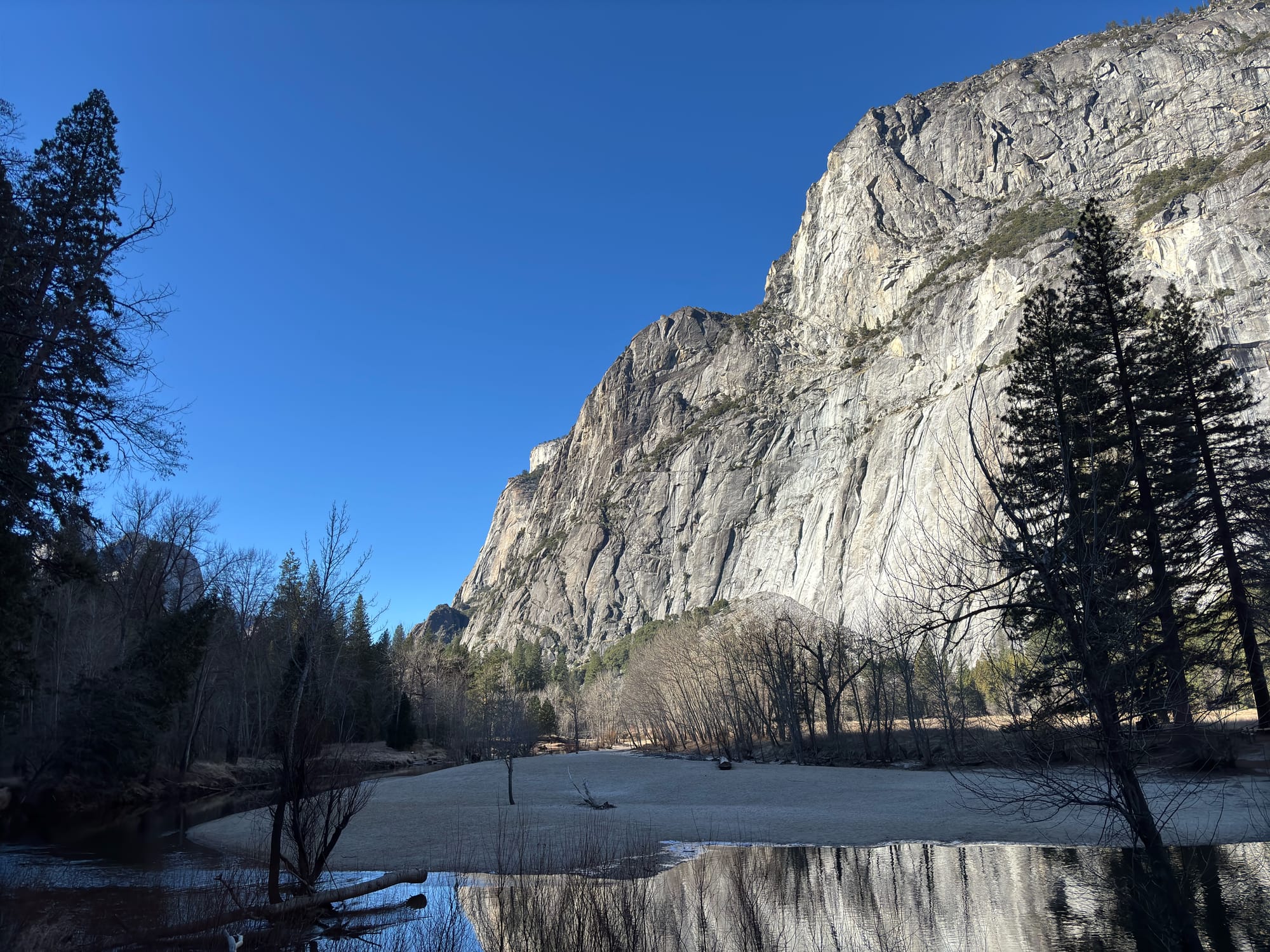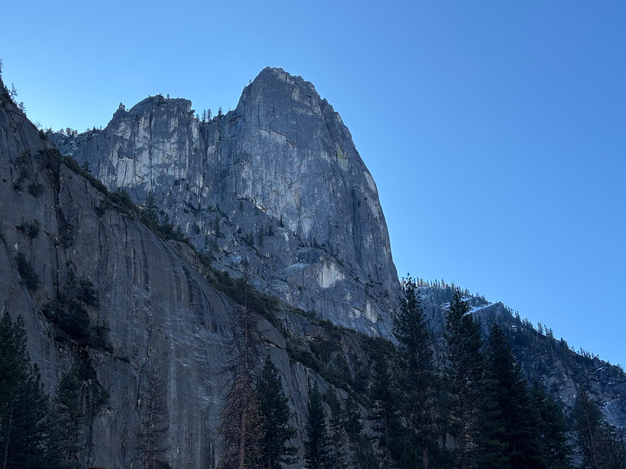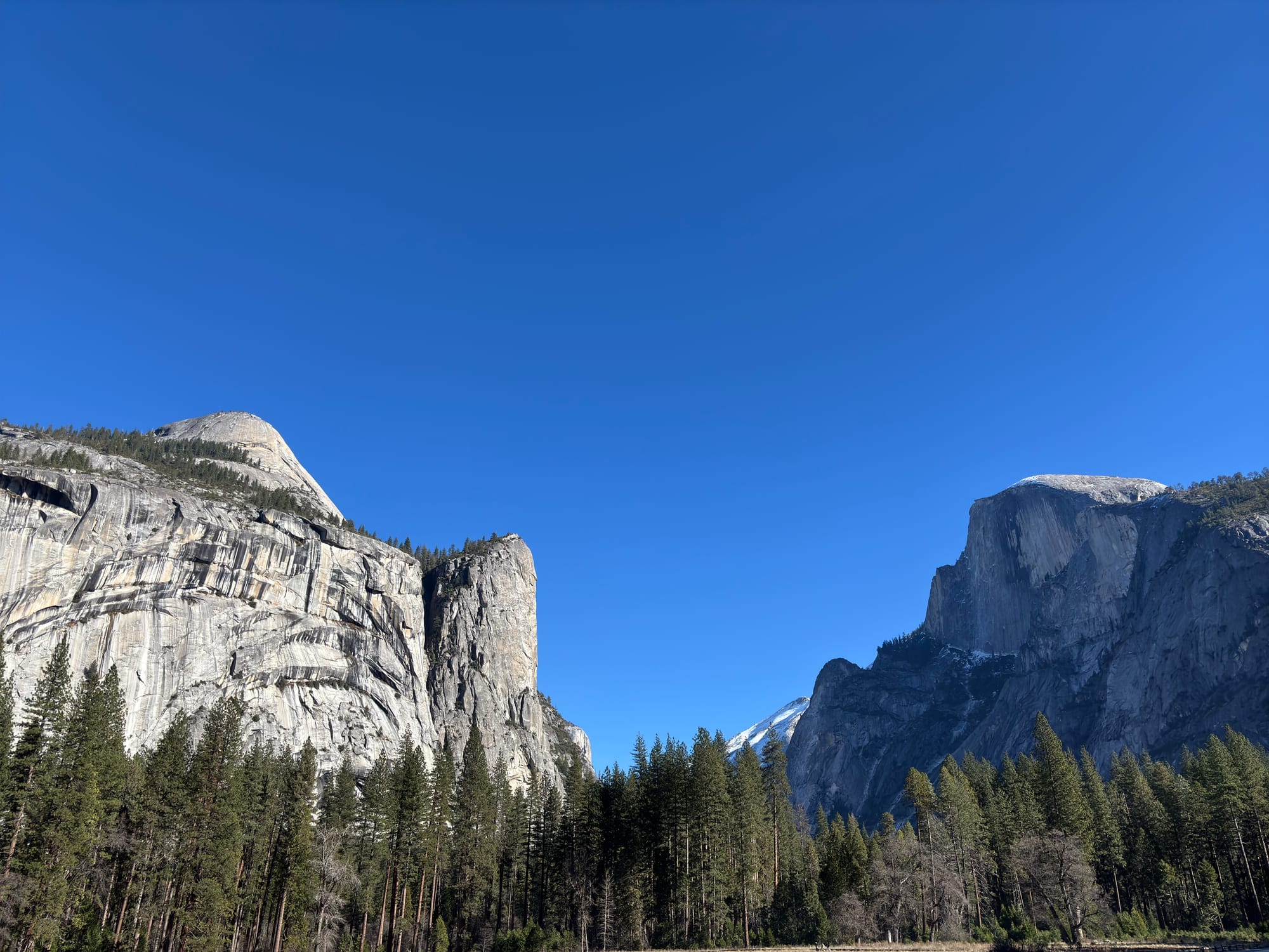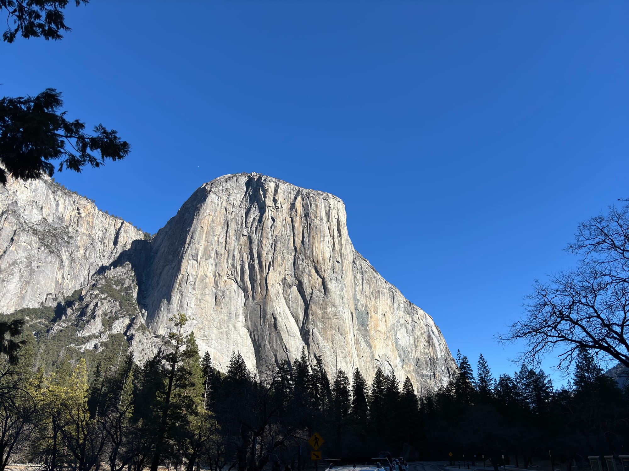 和前一天的计划一样,我们也是开车逛国家公园,中间在几个主要景点下来转一转。在 Yosemite 看到了大名鼎鼎的 Half Dome 和 El Captain,也就是 Alex Honnold 在 Free Solo 中完成的那个项目。传说冬天可以在 Yosemite 活捉野生的 Alex,反正这回没碰到。倒是多年前在上海见过 Alex 本尊,还和他合了影。当时握手的时候非常震惊,他的一根手指顶得上我两根手指,怪不得握力惊人。
