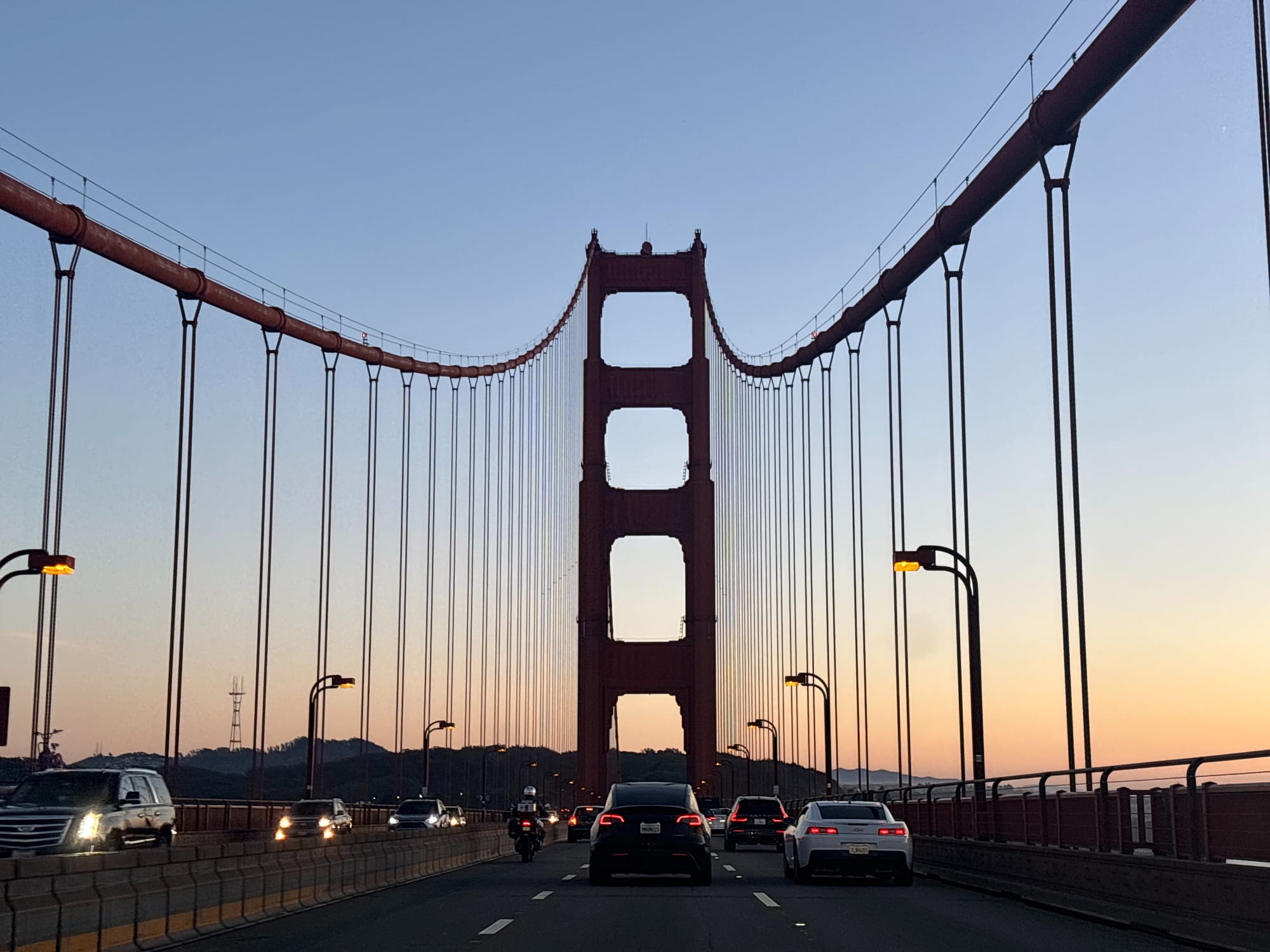 因为已经在加州境内,所以到处都是超充,我们也就没什么电池焦虑。下山吃个午饭顺便充了电,然后就一路往旧金山开。