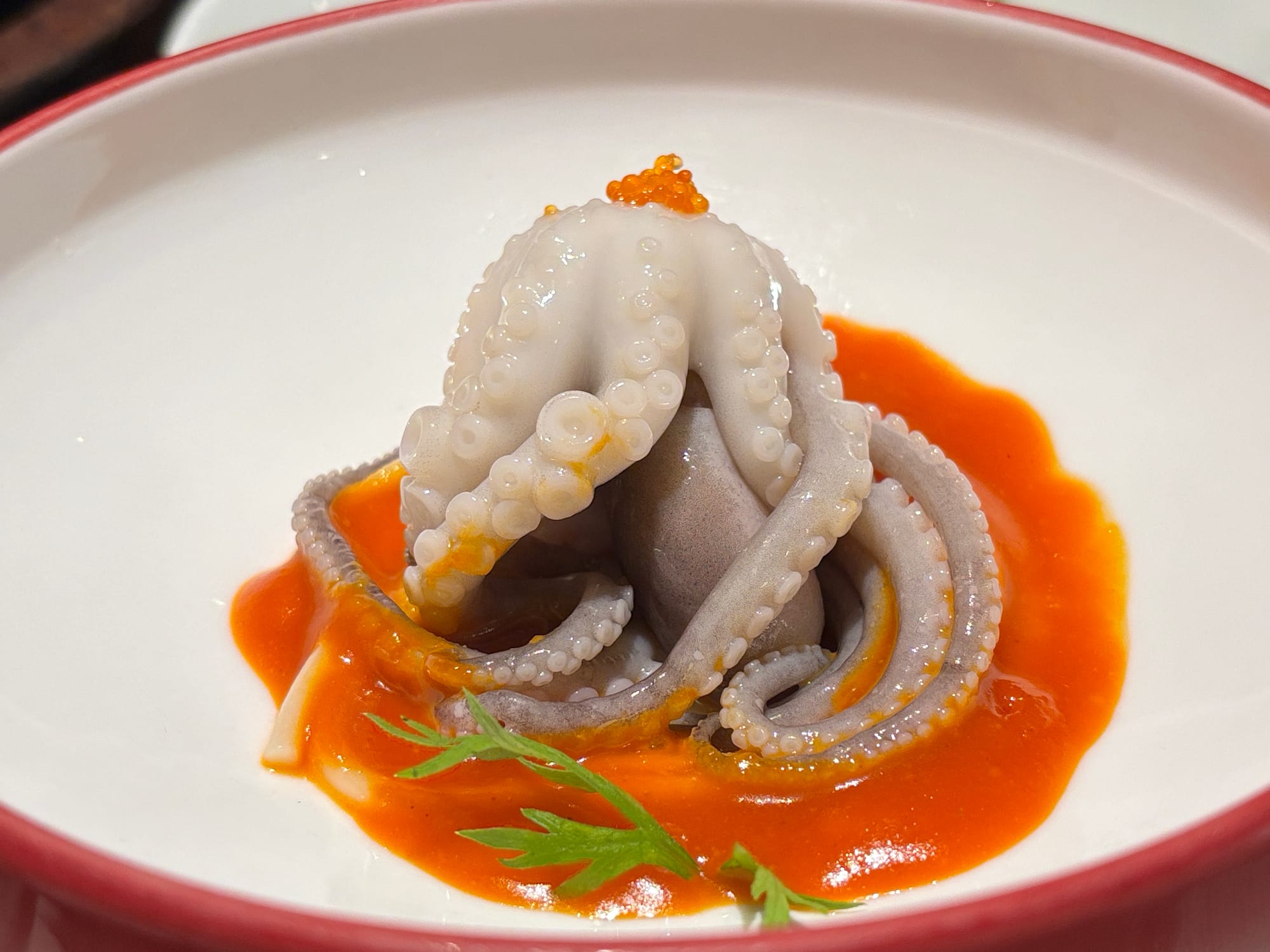 - 小章鱼(上次在厦门街头吃这个,感觉像在嚼橡皮,这次体验不错,一是章鱼很嫩,没有很大味道,二是料汁很独特,酸里带辣,一下子把味道带起来了)