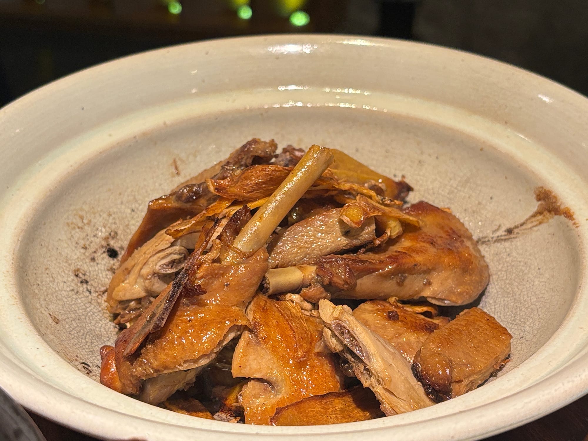 - 姜母鸭(这道做得一般,鸭肉没有完全入味,可能还是街边的铺子做得好。优点是不太腻,可以全部吃完)
